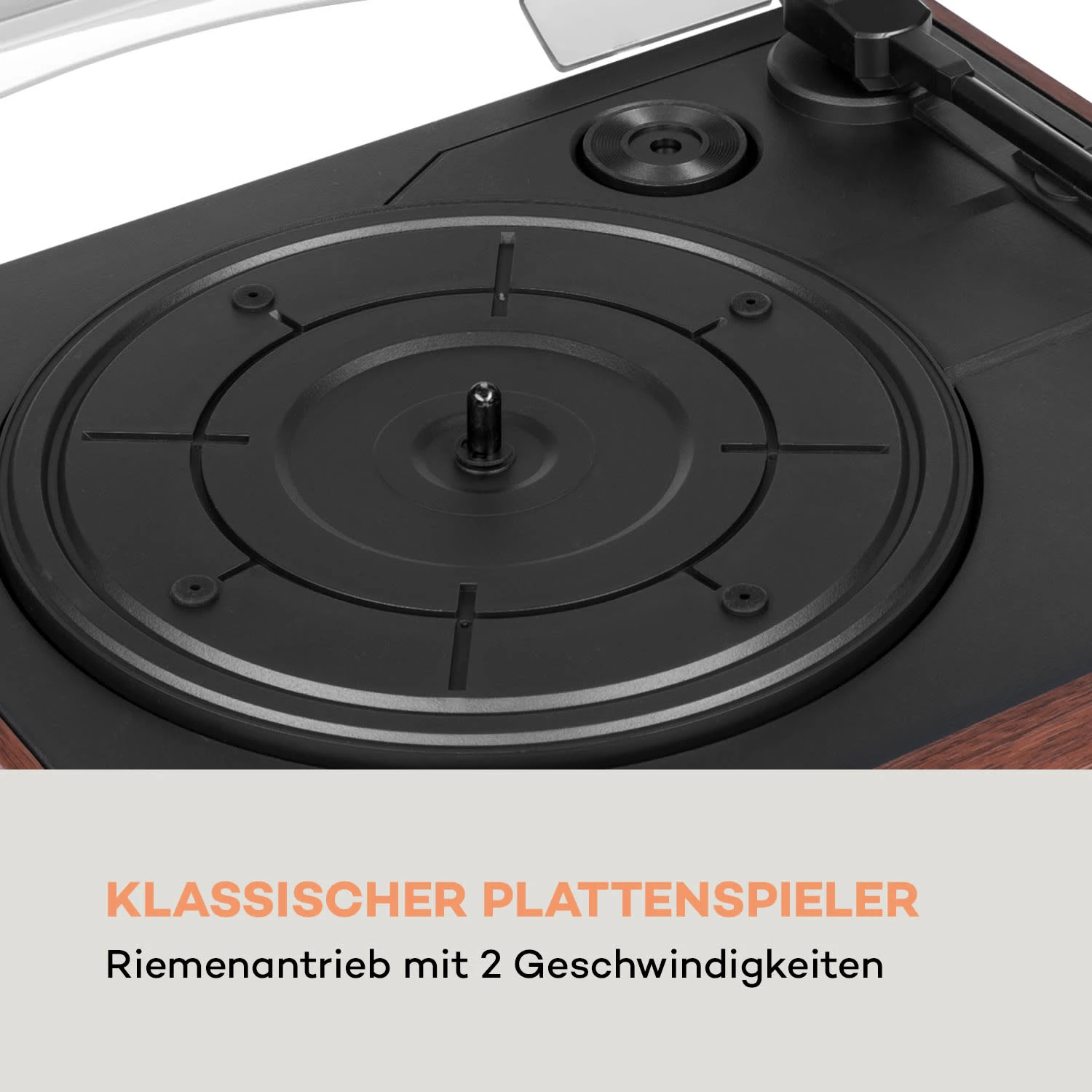 State of the Art verschmilzt mit guter alter Analog-Schule: Das auna 388-BT Wood Hifi System ist klassische Musikanlage und High-Tech-Wiedergabegerät in einem. Ausgestattet mit dem vollen Repertoire an altbewährten Audio-Abspielgeräten, wie Plattenspieler, CD-Player und zwei Kassettendecks für deine ganze Musikbibliothek, weiß die auna Kompaktanlage aber auch mit MP3s professionell umzugehen.