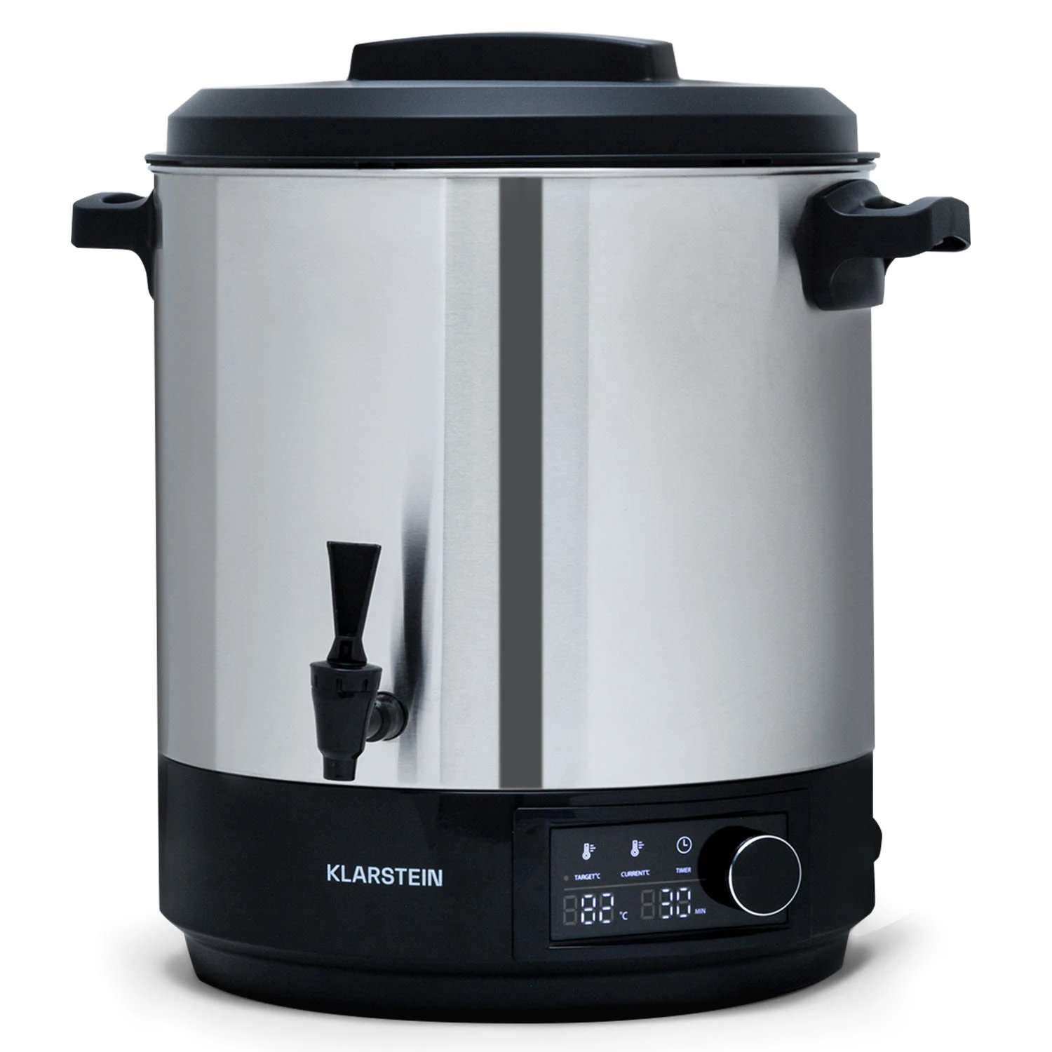 Heute wird gekocht, eingekocht! Mit dem Klarstein Abbey 25 Einkochtopf kommt Abwechslung auf den Speiseplan – mit Langzeiteffekt. Der 25 Liter große Einkocher bietet genug Platz, um den Inhalt deiner Einkochgläser mit Hitze in haltbare Konserven zu verwandeln. Egal ob die Obst- oder Gemüseernte, süße Marmeladenkreationen, herzhafte Wurstmasse oder fertig zubereitetes Gulasch, Braten und Rouladen – im Abbey 25 werden sie, dank wählbarer Temperatur von 30 – 100 °C und Einkochzeiten bis 180 Minuten, haltbar gemacht.