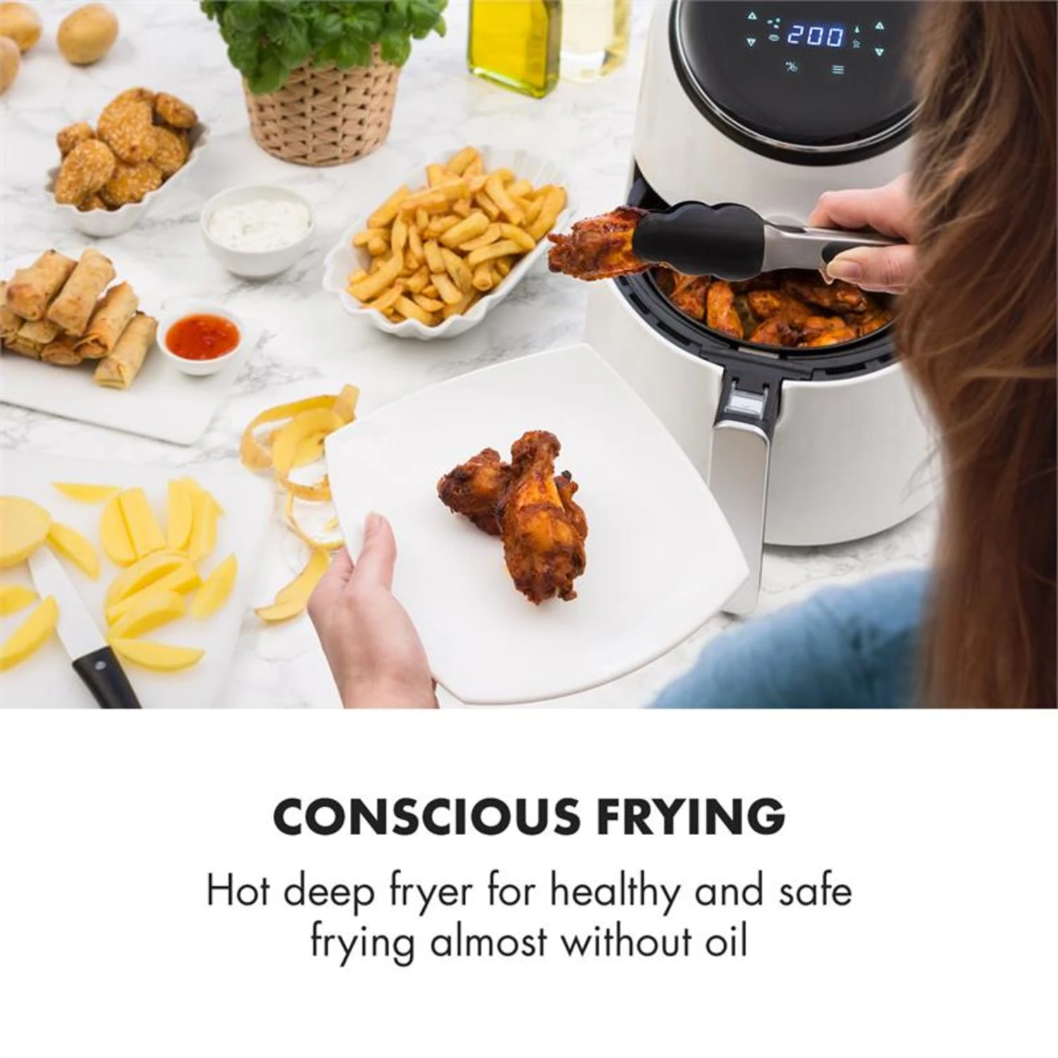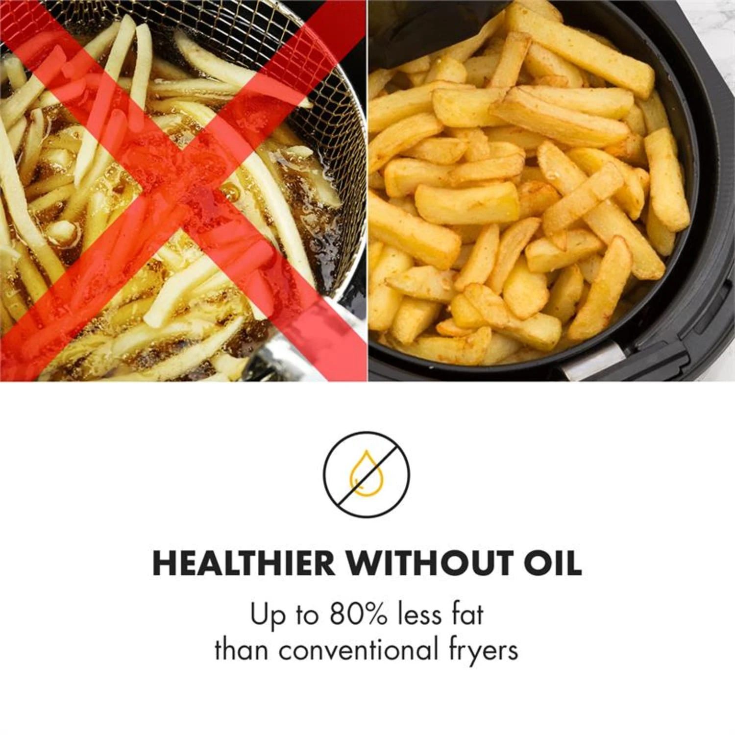 Heiße Freude für den Magen aus der Fritteuse mit bis zu 80% weniger Kalorien? Das geht! Mit der Klarstein AirVital Heißluftfritteuse wird nahezu öl- und fettfrei frittiert, gebraten, gebacken oder gegrillt: Knusprig, gesund und lecker!