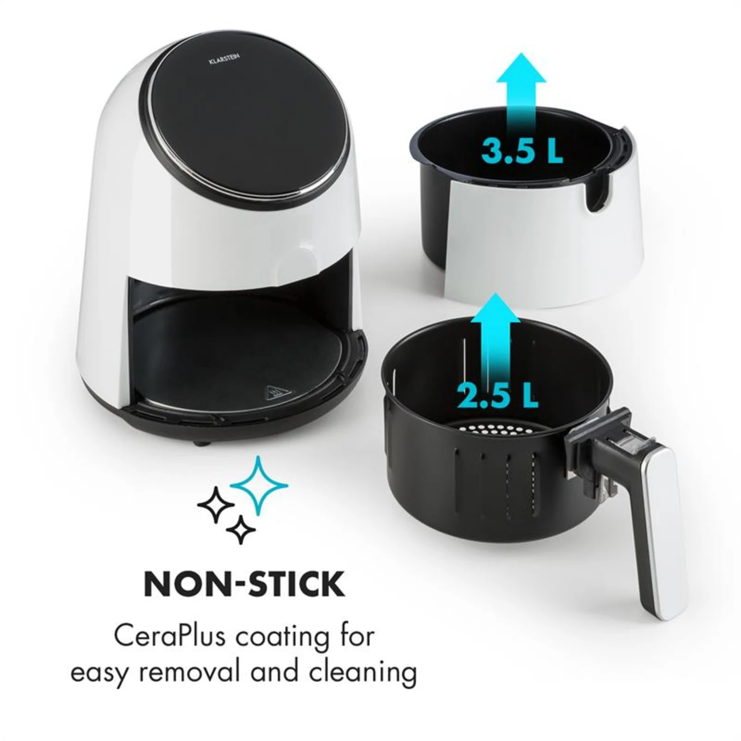 Bis zu 2,5 kg passen in den Grillkorb zum gesundheitsbewussten Frittieren. Dank Cool-Touch-Griff kann der Korb ganz einfach entnommen und die knusprig heißen Köstlichkeiten auf den Tisch gebracht werden. Unsere revolutionäre CeraPlus-Anti-Haft-Beschichtung verhindert das Anbacken und erleichtert im Anschluss die Reinigung. Ein Digitaldisplay mit Touch Control Panel macht die Bedienung kinderleicht und lässt stets alle getroffenen Einstellungen erkennen.