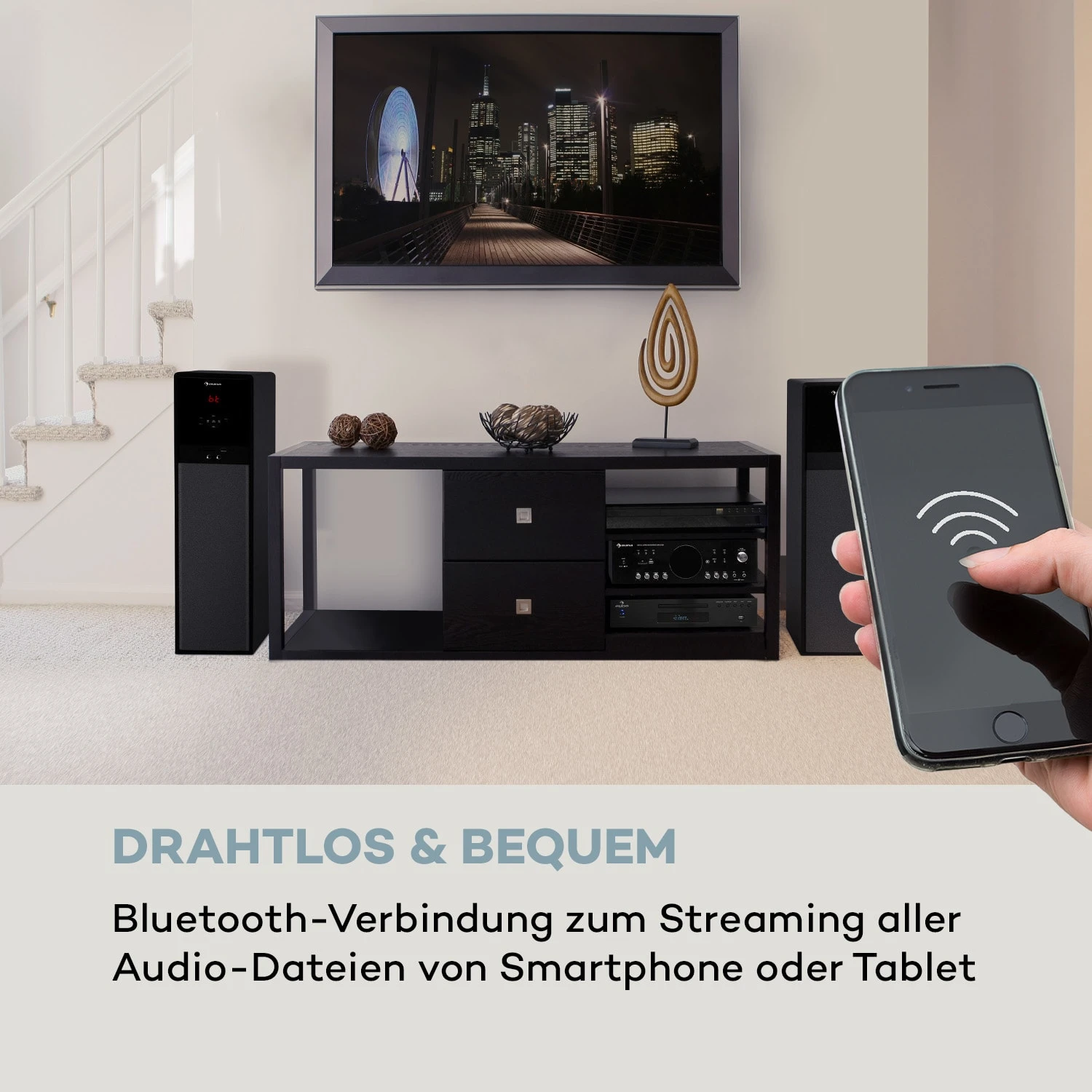 Kompakt, leistungsstark und vielseitig: Mit dem auna AMP-218 BT 5.1-Surround-Verstärker erhält das Heimkino seine intelligente Klangoptimierung.