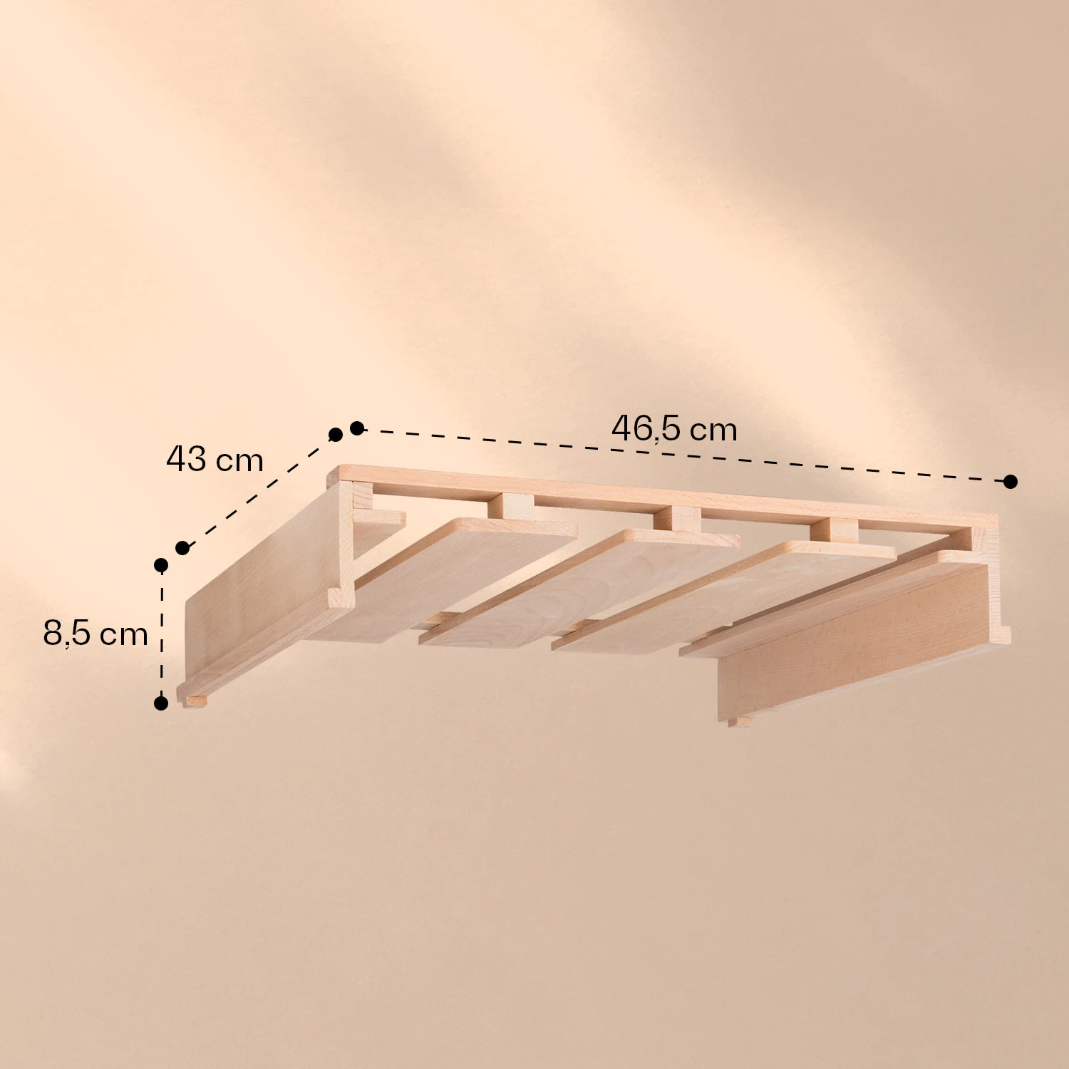 Die Perfektion für deinen Barossa 102 Duo Weinkühlschrank: der Klarstein Regalboden für Weingläser. Dank diesem raffinierten Zubehör kannst du nicht nur deine Weinschätze auf die perfekte Trinktemperatur bringen, sondern auch die Weingläser. Das garantiert dir maximalen Weingenuss. Das Weinglas-Regal kann einfach oben in den Weinkühlschrank eingesetzt werden. Vier Schienen bieten Platz für bis zu 16 Weingläser, welche du elegant kopfüber hineinhängen kannst.