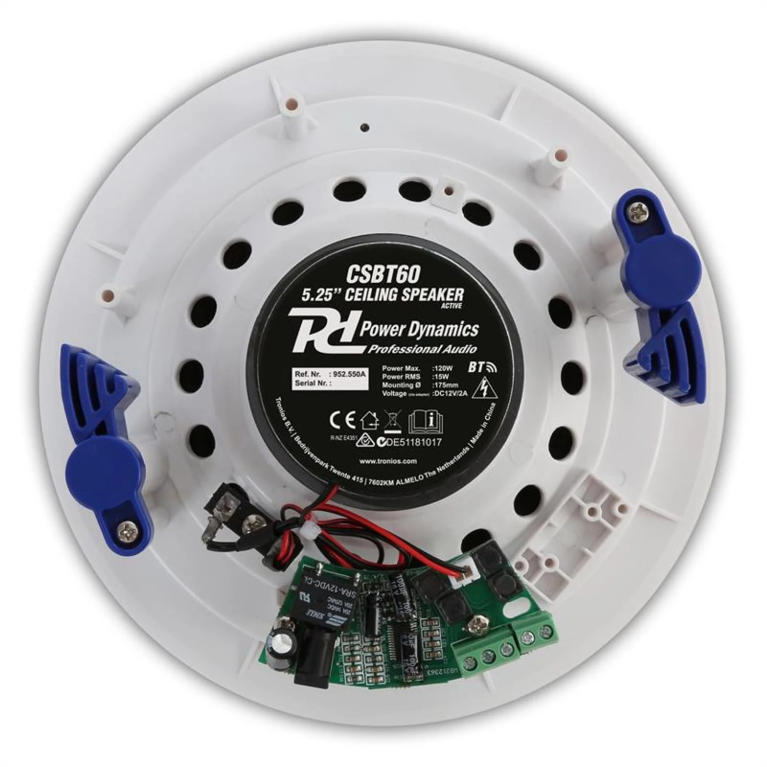 Das Power Dynamics CSBT60 ist ein Set von zwei Deckenlautsprecher, von denen einer mit einem eingebauten Digitalverstärker ausgestattet ist. Der passive Lautsprecher lässt sich mit dem aktiven Lautsprecher verbinden. Dank des Bluetooth-Empfängers ist das drahtlose Audiostreaming von Smartphone, Laptop oder Tablet möglich.