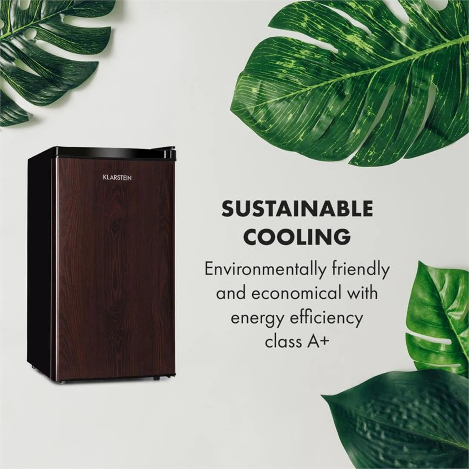 Rustikaler Küchencharme im Kompaktdesign! Der Klarstein Feldberg Kühlschrank ist nicht nur sparsam in Sachen Platz- und Energiebedarf, er begeistert auch durch sein Äußeres. Sein Design im MirageCool Concept belebt nicht nur die Küche, sondern auch alle anderen Wohnambientes mit einem schlicht eleganten Holz-Design Print.