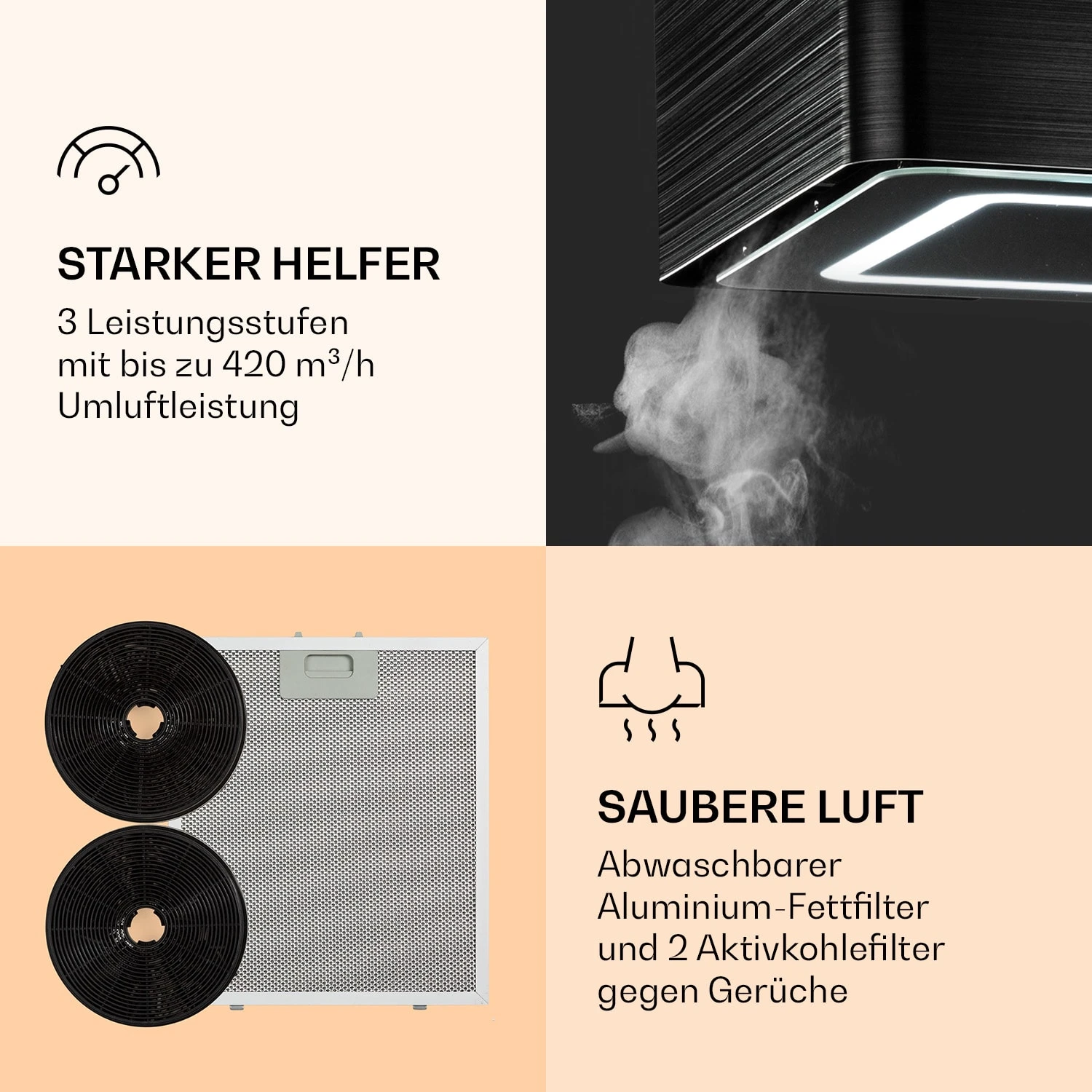 Futurelight Smart Inselabzugshaube Umluft 420m³/h LED Edelstahl