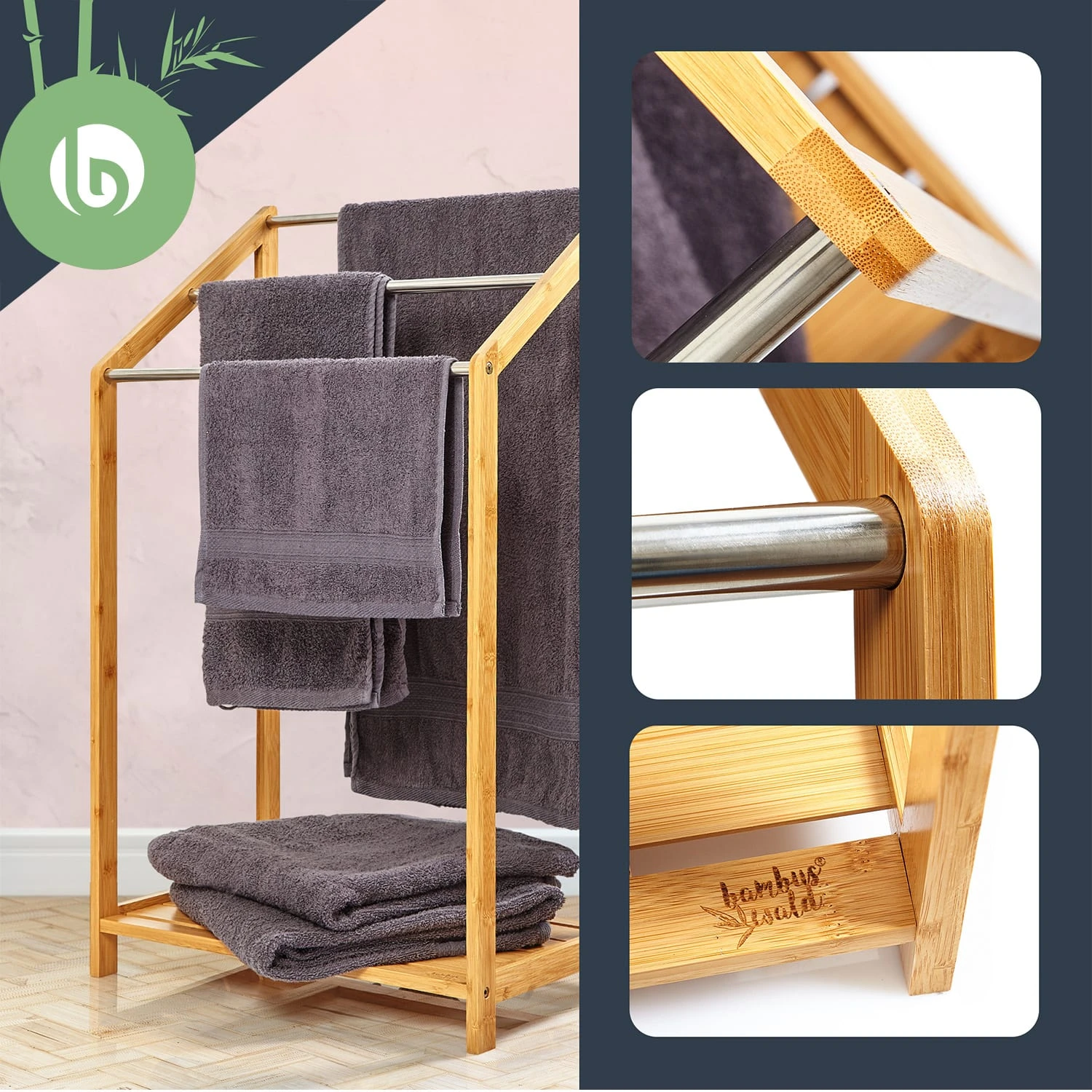 Handtuchhalter 3-fache Metallstreben 51x86x31cm Stufenenoptik Bambus -Innovation Home Appliances Store 10038104 yy 0005 logo