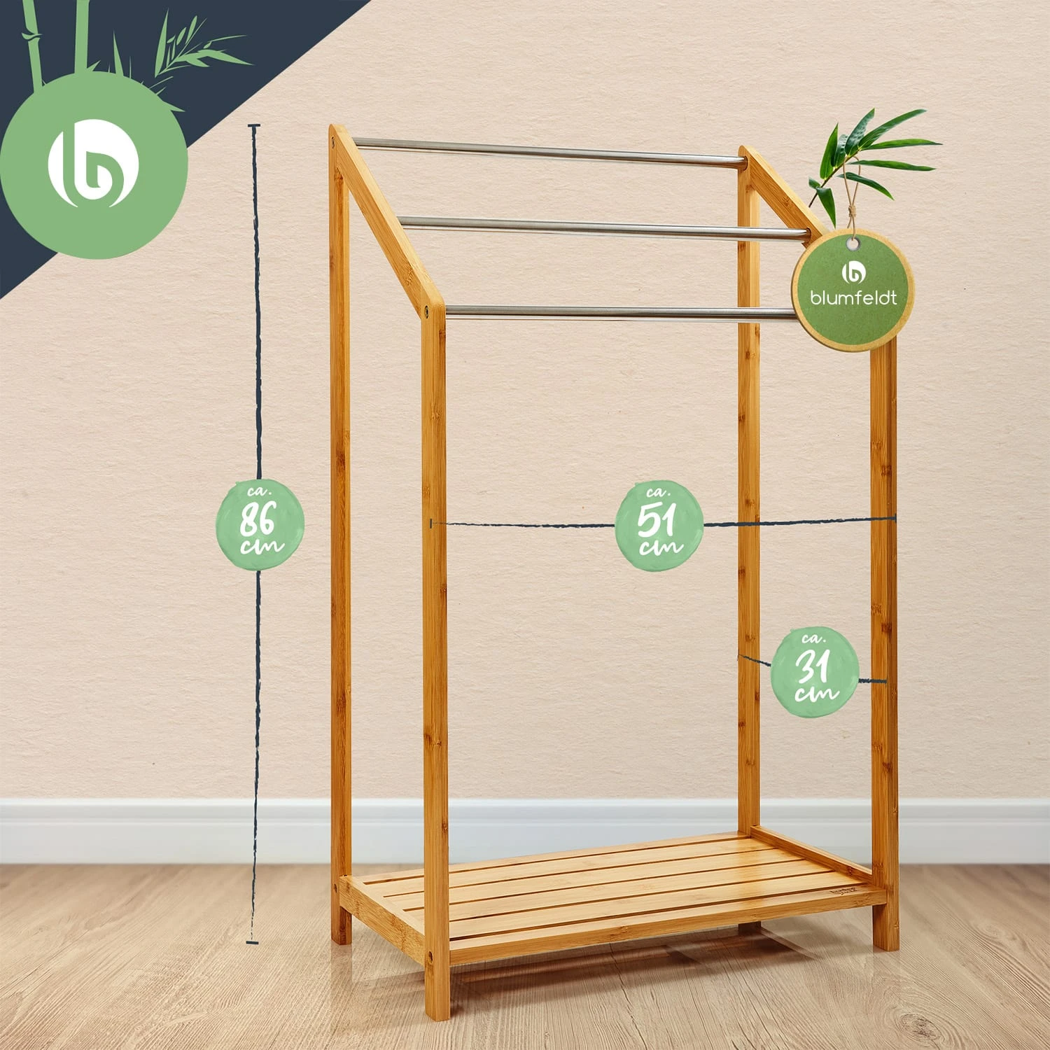 Handtuchhalter 3-fache Metallstreben 51x86x31cm Stufenenoptik Bambus -Innovation Home Appliances Store 10038104 yy 0004 logo