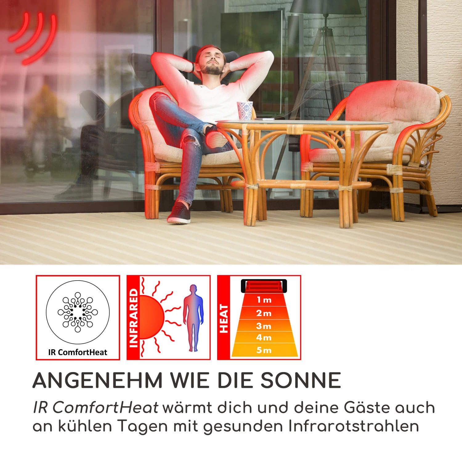 Ein Verteidiger behaglicher Wärme im Garten, auf Balkon und Terrasse: Der blumfeldt Heat Guard Reflex Heizstrahler bringt blendfreie Wärme in kühle Tage und Nächte!