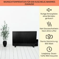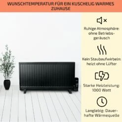 Wallkyrie Wandheizgerät 1000W/2000W 10 – 49 °C Thermostat Schwarz