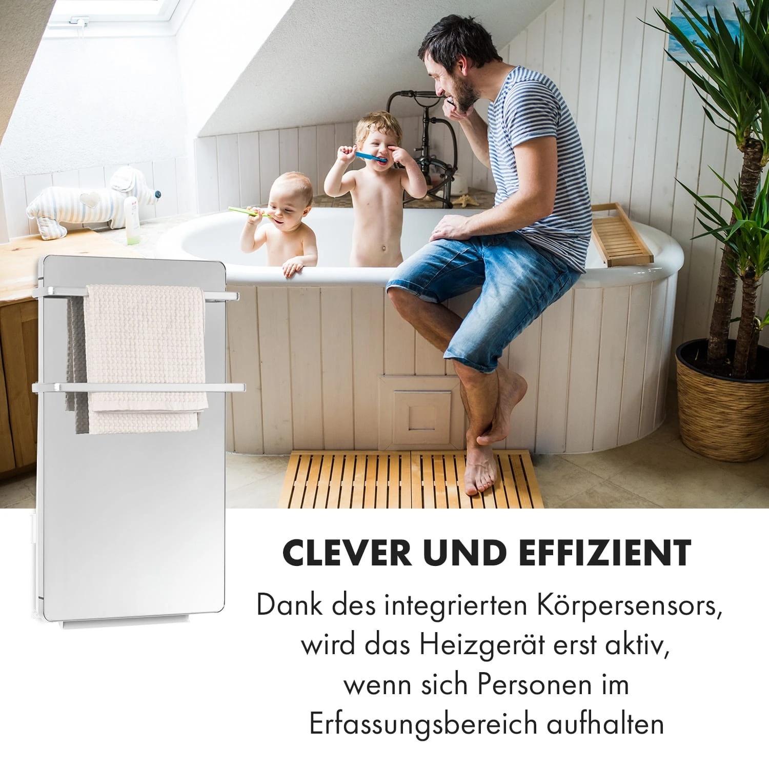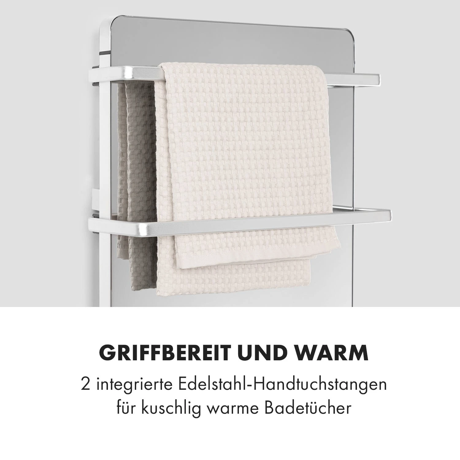 Das Klarstein Hot Spot Crystal Flow Heizpanel spendet täglich entspannende Wärme im Bad und sorgt für kuschelig warme Handtücher.