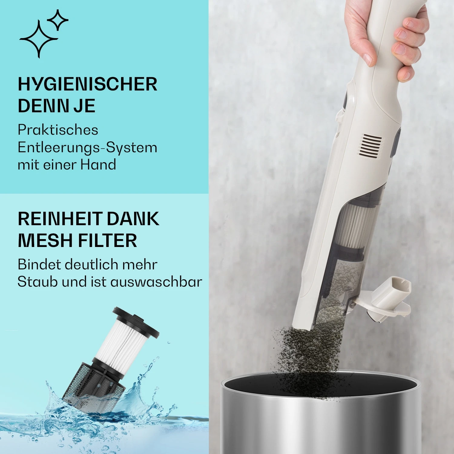 LARMA Akku-Handstaubsauger Kabellos Beutellos Akkubetrieben 32 Min Laufzeit Max.