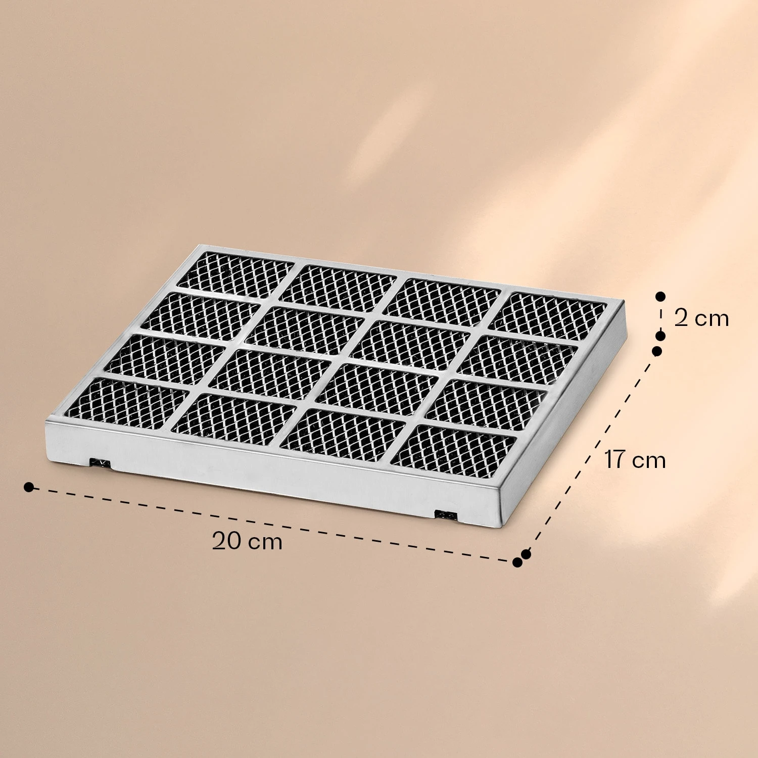 Neue Kraft für frische Luft in der Küche. Der Klarstein Mariana Aktivkohlefilter versorgt deine Dunstabzugshaube mit einem Zubehör zur Luftverbesserung, das ganz einfach in der Haube eingesetzt wird. Die Aktivkohle im Filter bindet Gerüche und macht deine Haube fit für den Umluftbetrieb. Aktivkohlefilter sollten, je nach Häufigkeit der Nutzung der Abzugshaube, alle 3-4 Monate gewechselt werden, um ihre Leistungskraft zu erhalten.