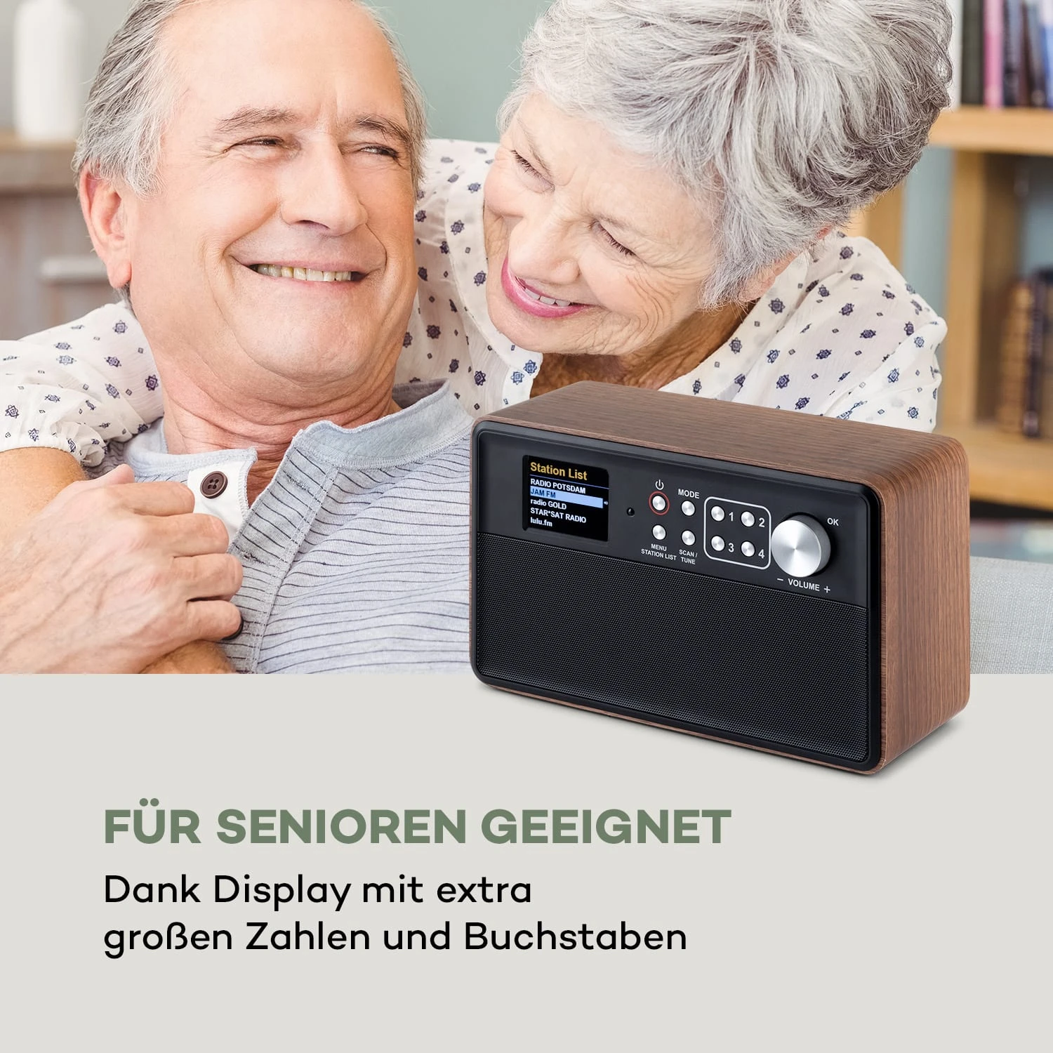 Das auna Nestor DAB+ Radio ist dank einem Farbdisplay mit extra großen Zahlen und Buchstaben sowie dem Basismodus für eine partielle Tastensperre besonders für Senioren und Kinder geeignet.