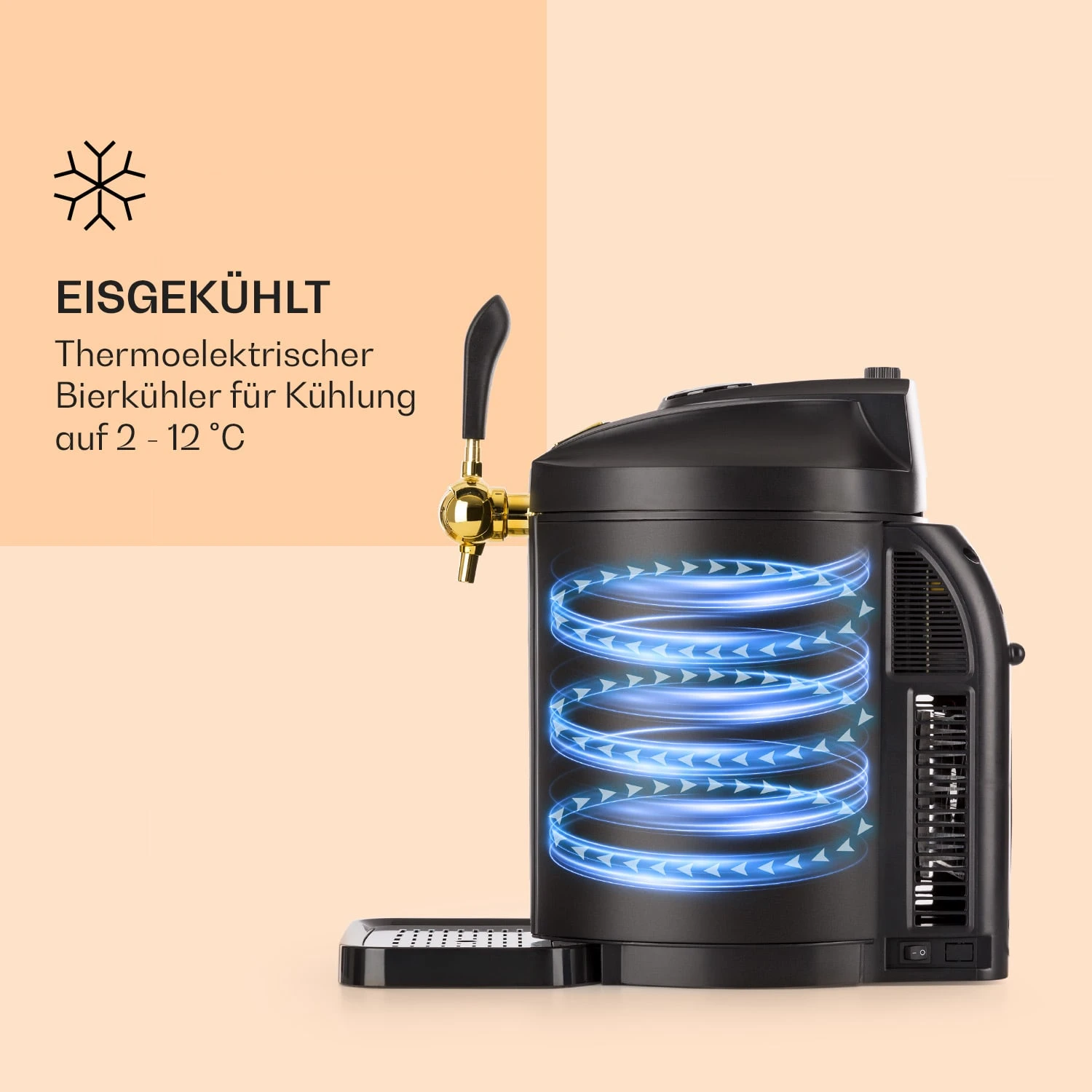 - 6 wählbare Kühltemperaturen: 2, 4, 6, 8, 10 und 12 °C