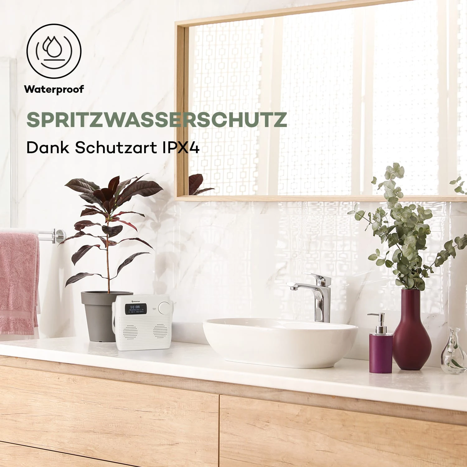 Durch den praktischen CD-Player kannst du mit dem Splash Badezimmer-Radio sämtliche CDs im Format CD-R, CD-RW und MP3-CDs abspielen. Der integrierte DAB+ Tuner ermöglicht dir zusätzlich zum analogen UKW-Signal den digitalen Empfang aller Radiosender und liefert höchste Soundqualität mit einem stabilen, rauschfreien Klangbild. Außerdem lassen sich per Bluetooth-Schnittstelle alle Audio-Dateien bequem vom Smartphone und Tablet streamen. Das Kompaktradio überzeugt darüber hinaus mit einer Timerfunktion und ist dank Schutzart IPX4 zuverlässig vor Spritzwasser geschützt. Durch sein platzsparendes und ansprechendes Äußeres fügt sich das Splash perfekt in jedes Badambiente ein.