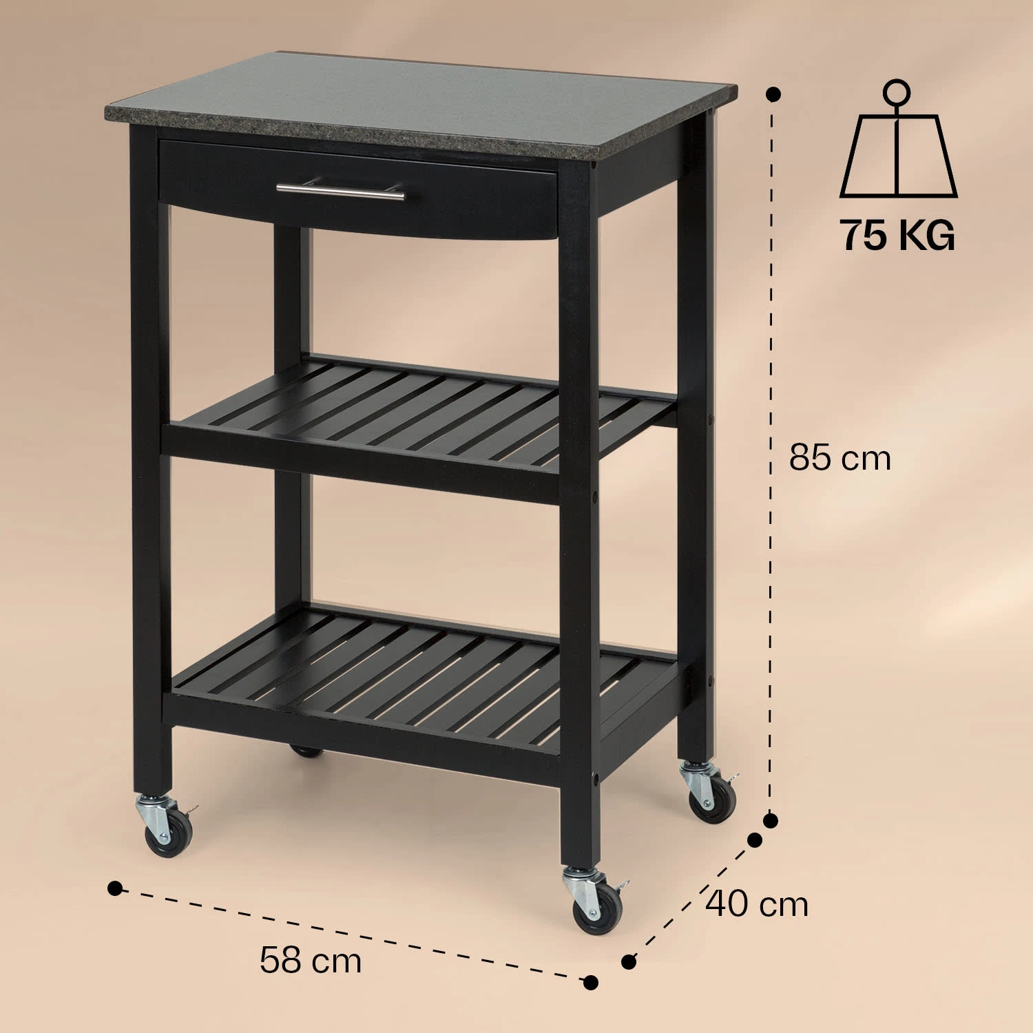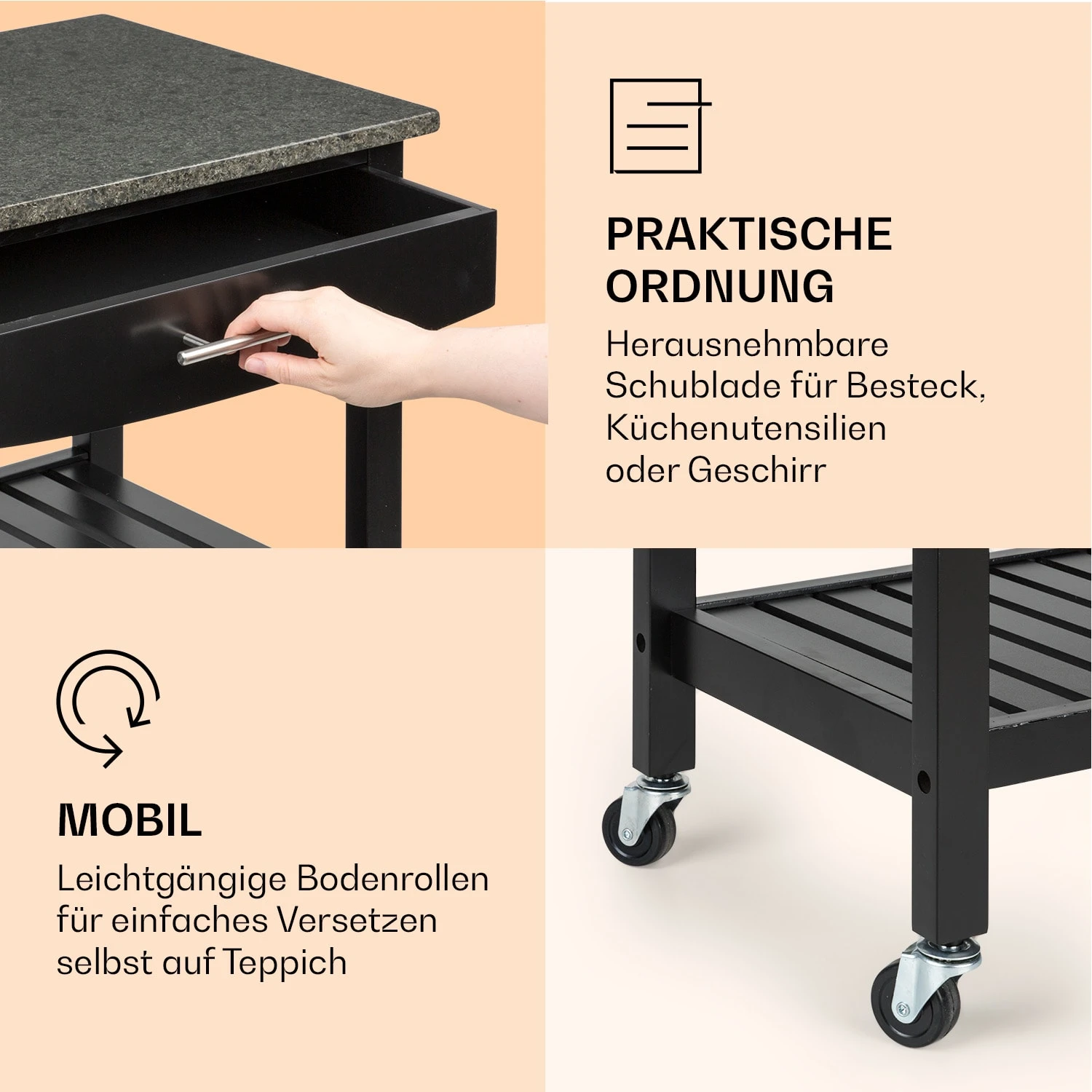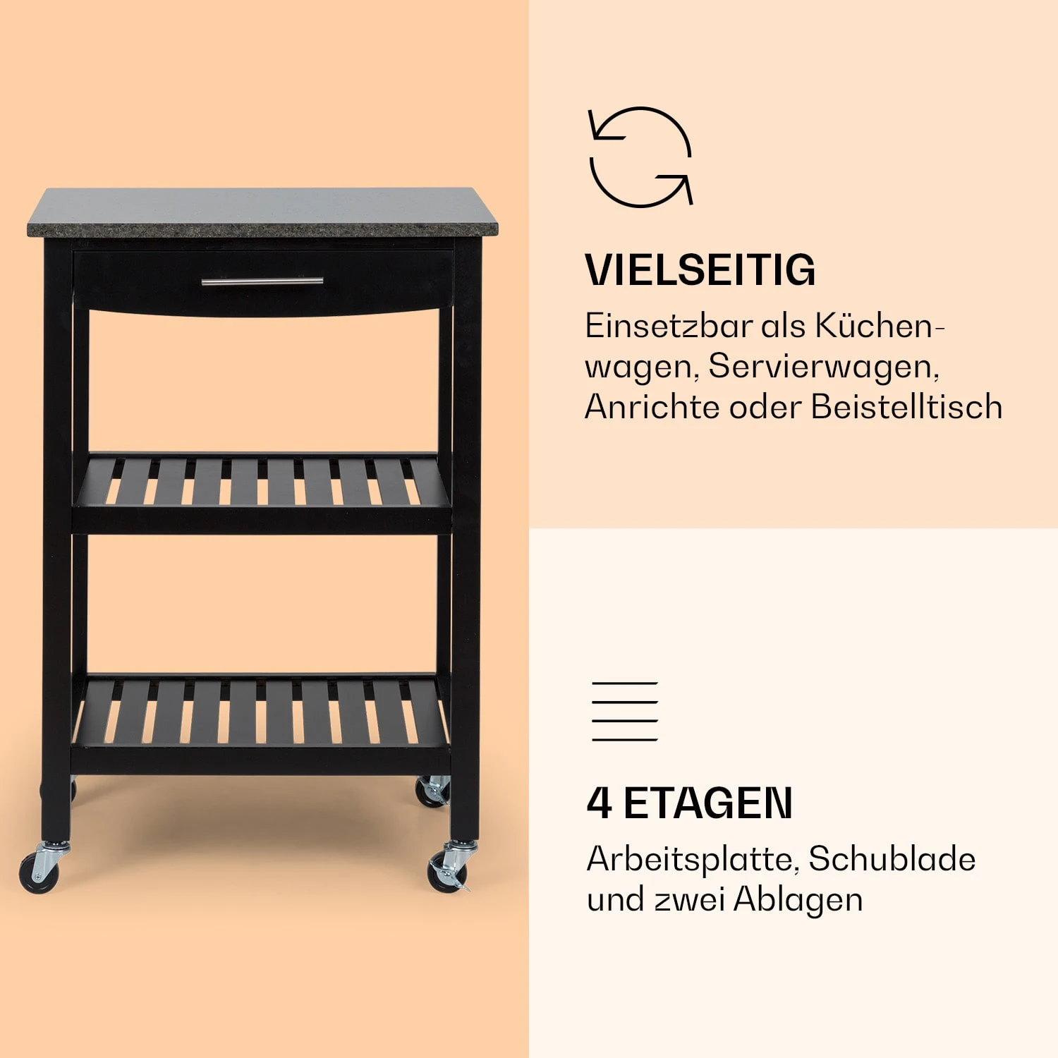 Tennessee Servierwagen Küchenwagen 4 Etagen Holz Granit Mobil