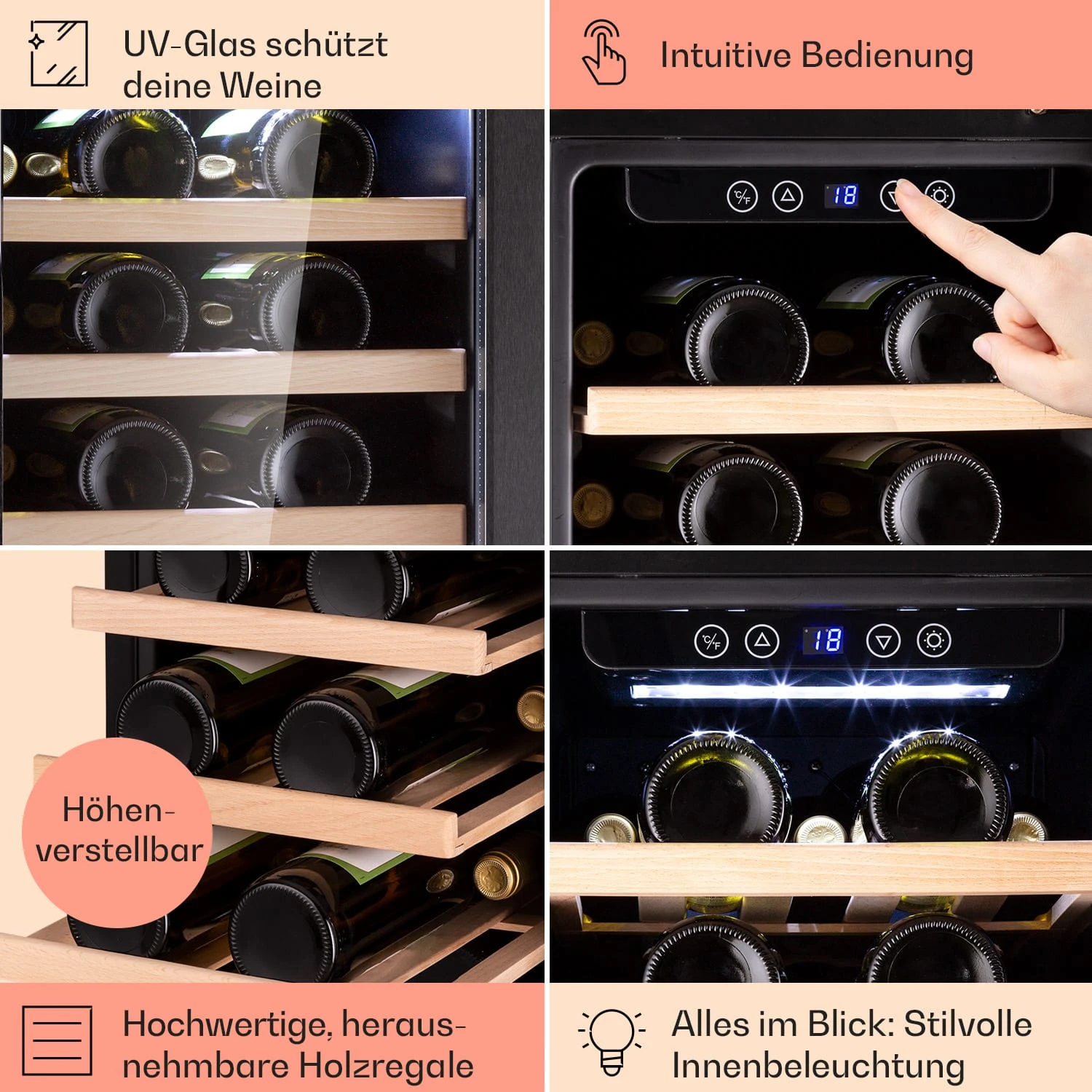 Vinovilla 29 Built-In Weinkühlschrank 81 L / 29 Fl. 1 Zone Glastür Edelstahl