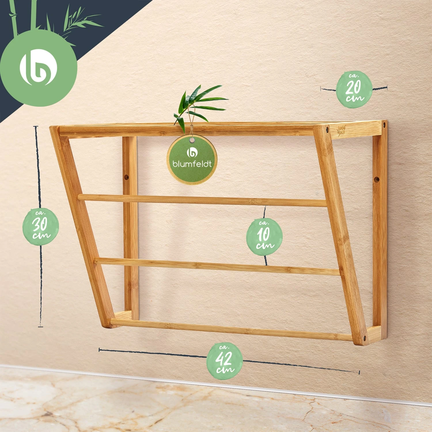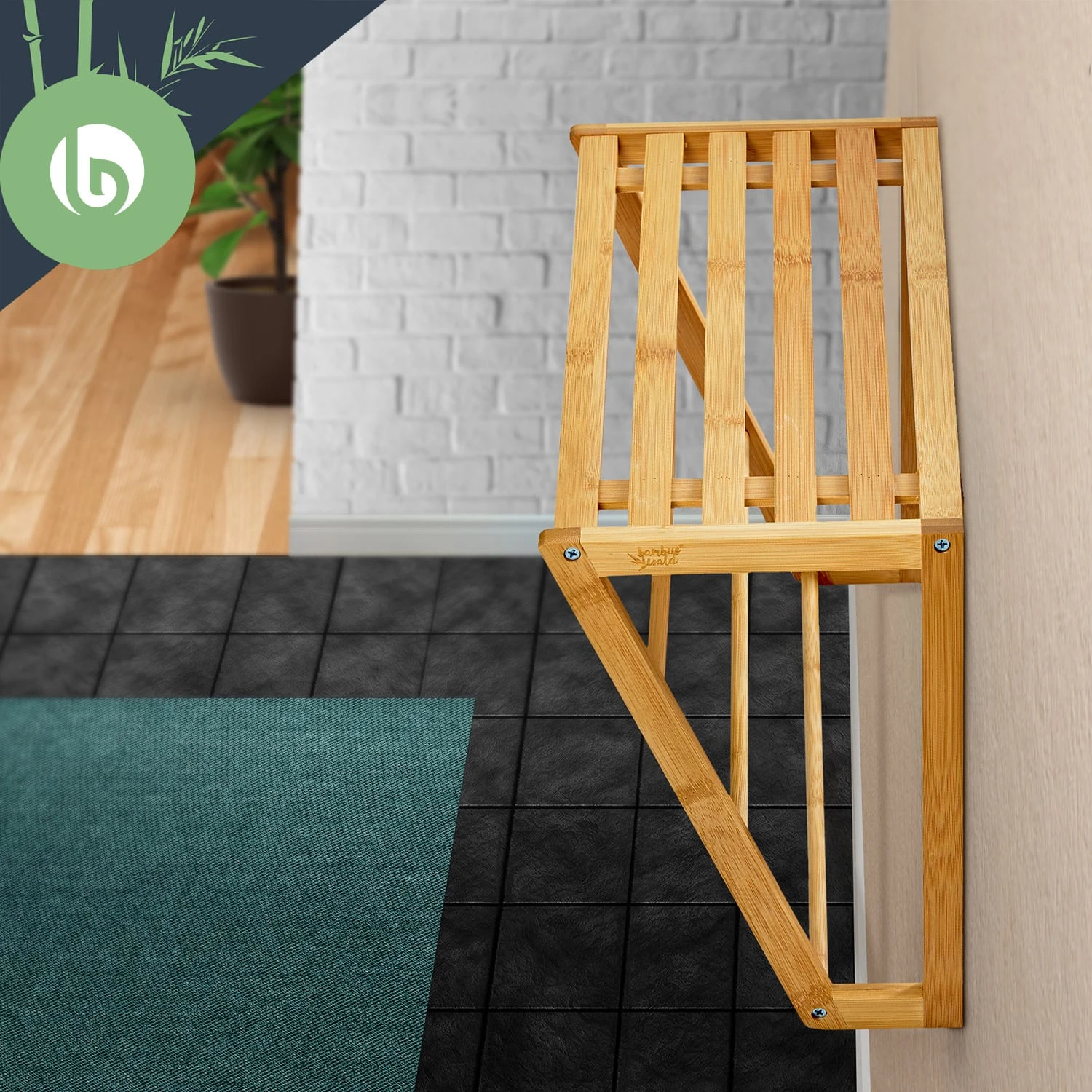 Wandregal Bad 3 Handtuchstangen Ablagefläche Oben 42x30x20cm Bambus